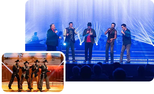 High-energy, fun, and endlessly entertaining, Clay Cooper’s Country Express blends country hits, rock classics, comedy, and incredible choreography into one dynamic show. With powerhouse vocals, talented dancers, and nonstop excitement, this production is perfect for guests looking for a lively, feel-good night out.