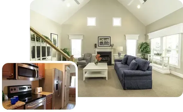 Your stay at Kings Creek Resort includes beautifully designed cottage-style accommodations that provide space, privacy, and comfort. With separate bedrooms, full kitchens or kitchenettes, inviting living areas, and private patios or balconies, each unit gives you room to spread out and unwind. It’s the kind of place where mornings start slowly with coffee, afternoons are spent exploring, and evenings end with laughter and relaxation—just like a true home away from home.